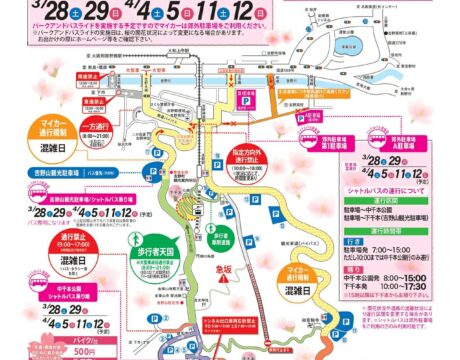 観桜期の吉野山周辺交通規制のお知らせ 2026年3月6日 by Admin_kanri2022 所在地 電 話 3月20日~5月10日、吉野山周辺で交通規制が行われます。 吉野山の観桜に伴い、駐車場の少ない吉野山周辺道路は著しく混雑いたします。 期間中、吉野山にお越しの際は、出来るだけマイカ...